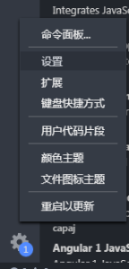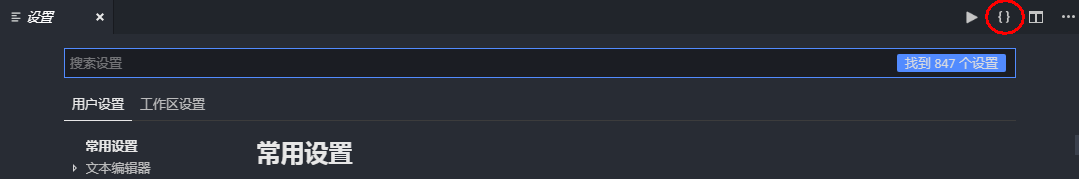 - 设置:右键齿轮形按钮,点击设置,打开后点击{}按钮,进入json格式,便于后续配置。